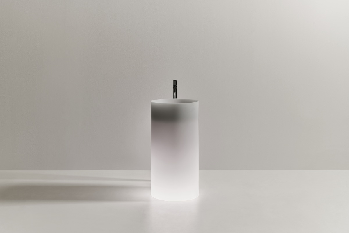 Lavabo Breeze di antoniolupi, di Cristalmood (solid surface di resina poliestere e pigmenti coloranti estremamente leggero) traslucido con illuminazione integrata nella parte inferiore