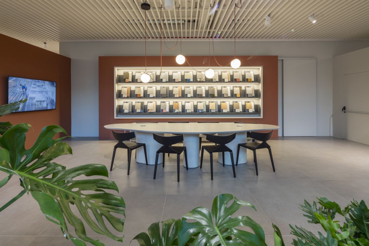 Organizzato su due livelli, lo showroom offre un’ampia gamma di proposte per ambienti interni ed esterni, con layout che esaltano le soluzioni ceramiche in diversi contesti progettuali. Tra i punti di forza, spiccano la piazza d’ingresso con aree verdi integrate e la corte interna dedicata alle collezioni outdoor, un luogo che unisce design e natura per ispirare nuove visioni progettuali.