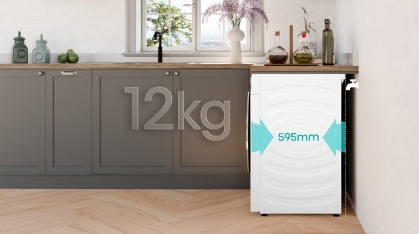 Le configurazioni disponibili includono lavatrici e lavasciuga slim da 8 kg e 8+5 kg, con una profondità di soli 47 cm, e un modello standard da 10,5 kg in appena 55 cm di profondità.
