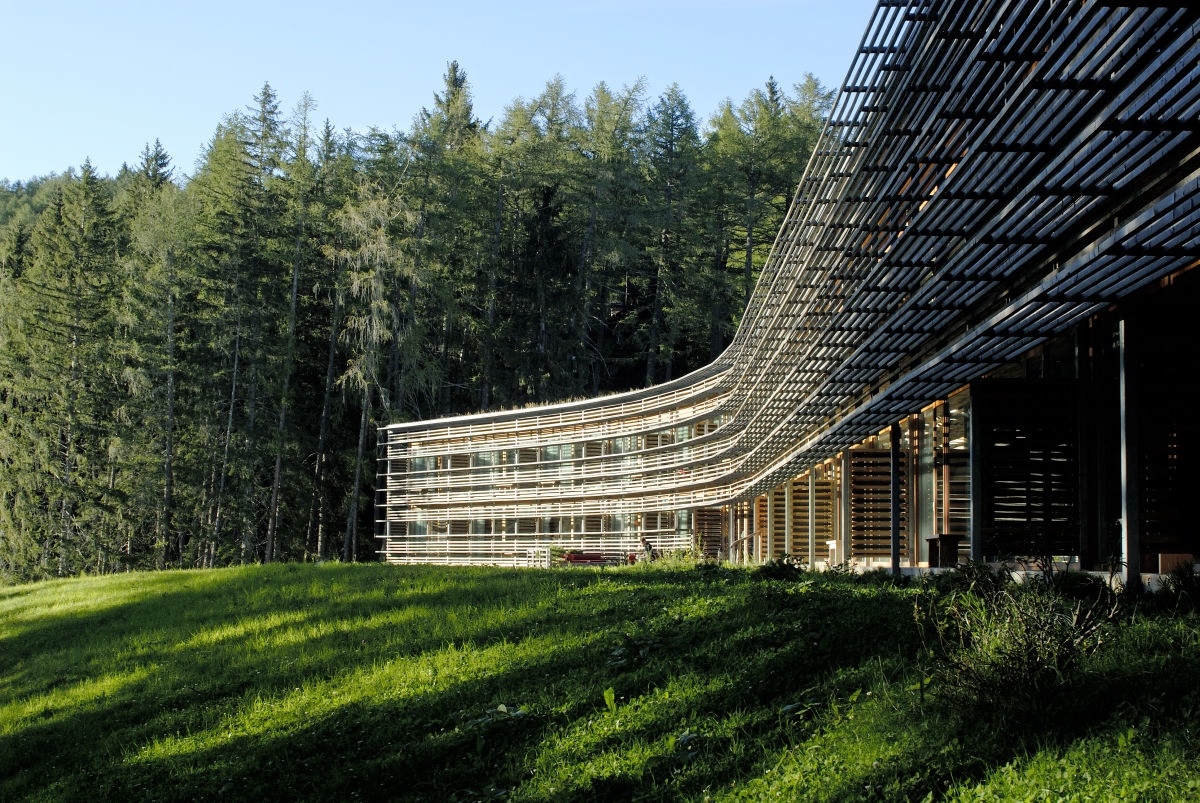 Vigilius Mountain Resort – situato a 1500 metri di altezza sulle Alpi sopra Merano – è raggiungibile solo a piedi o in funivia. In questa splendida architettura, uomo, architettura e ambiente si uniscono attraverso un approccio olistico per progettare un hotel che non solo annovera 5 stelle, 35 camere, 6 suite, una spa su tre livelli, una piscina, ma è anche un luogo per ritemprare lo spirito e ristabilire un rapporto unico con la natura e i boschi di larici circostanti.