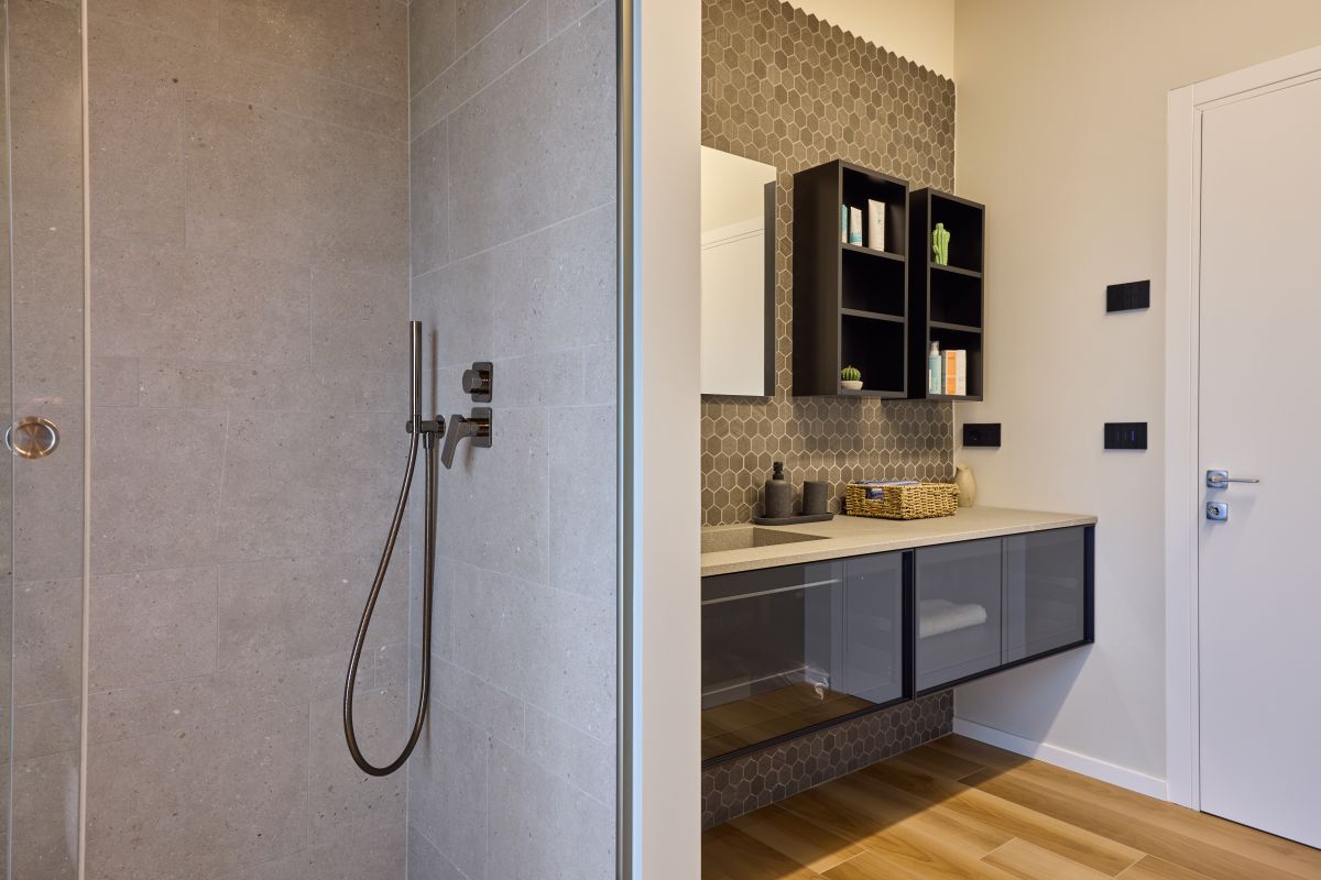 Il progetto pone particolare attenzione alla sostenibilità, con soluzioni energetiche all’avanguardia, come un impianto fotovoltaico e un sistema di domotica per il controllo ottimale dei consumi energetici. L’edificio è classificato in classe energetica A4, grazie anche all’impianto termico a pavimento radiante alimentato da una pompa di calore elettrica inverter, che garantisce un comfort ottimale durante tutto l’anno.